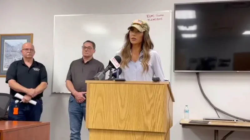 Returning for press conferences on Monday and Tuesday, Noem described the extensive damage: “We have whole homes that have fallen into the lake. We’ve got hundred-foot drop-offs from washouts, live power lines across roads, boats in trees, and half-fallen trees.”