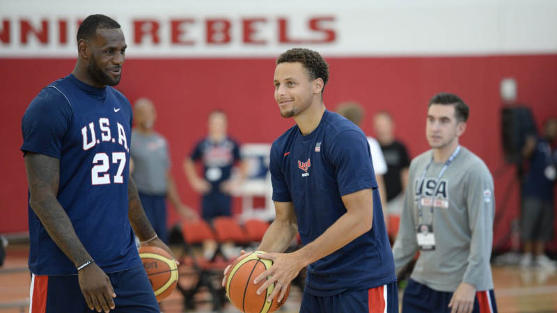 LeBron James, Stephen Curry, Kevin Durant, Joel Embiid, Jayson Tatum, Devin Booker, Jrue Holiday, Anthony Davis, Anthony Edwards, Bam Adebayo and Tyrese Haliburton.